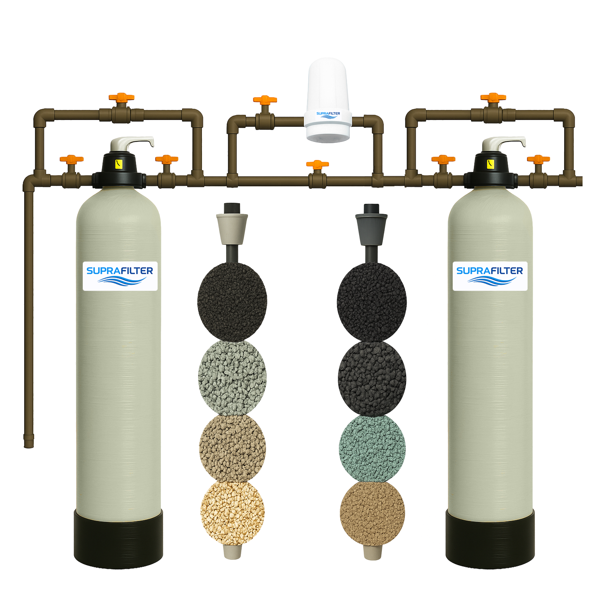 O Filtro Central Duplo SPF2m3h da marca SupraFilter é a solução ideal para quem busca um sistema de filtração eficiente e confiável para o tratamento de água potável. Com uma capacidade de 2000 litros por hora, este purificador é projetado para atender as necessidades de consumo humano, garantindo água limpa e saudável para toda a família.