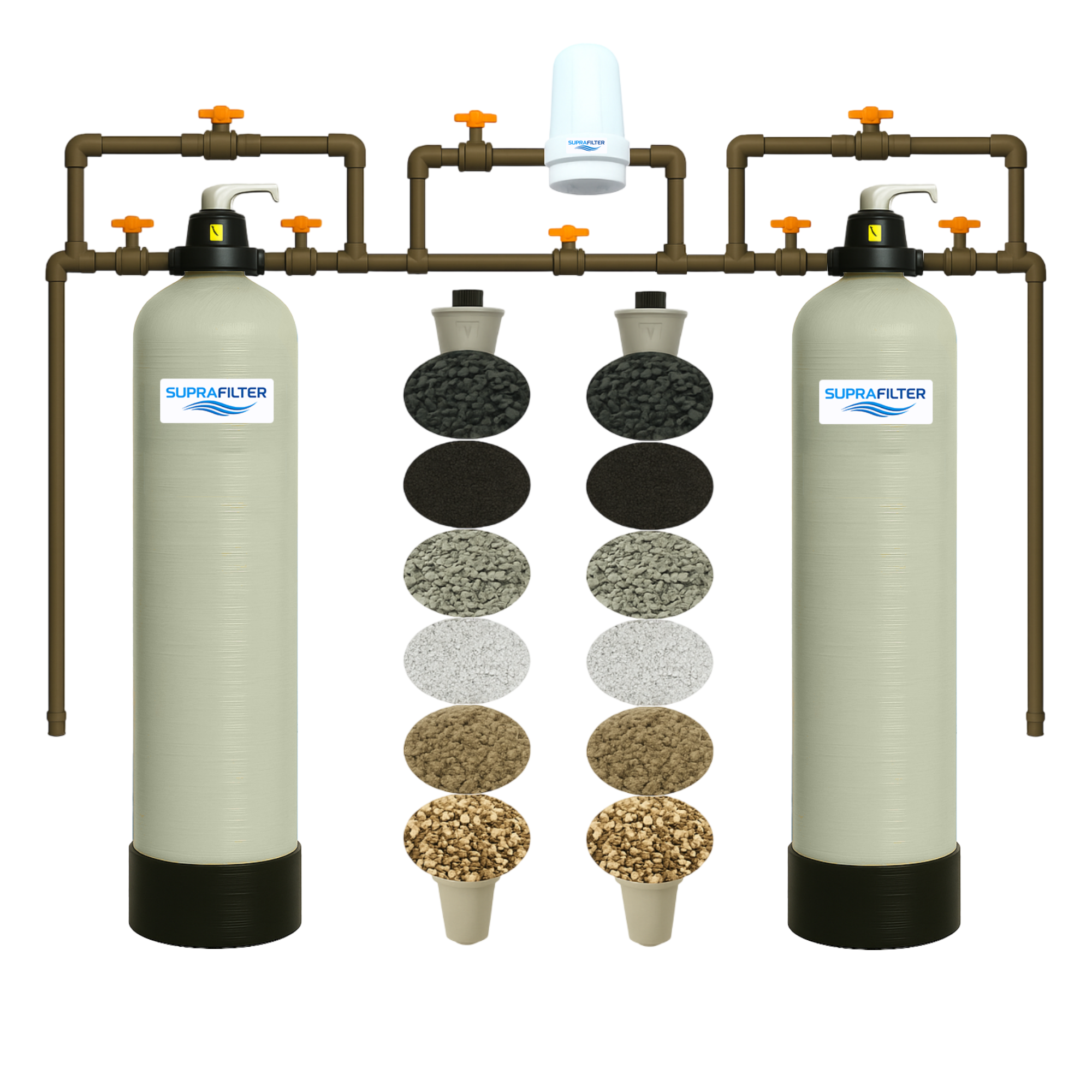 O Filtro Central Duplo SPF3m3h da marca SupraFilter é a solução ideal para quem busca água potável de alta qualidade para consumo humano. Com um sistema de filtração que trata até 3000 litros por hora, este purificador é projetado para remover substancias indesejadas como ferro, ferrugem, bactérias, coliformes, agrotóxicos e toxinas, garantindo uma água limpa e saudável.