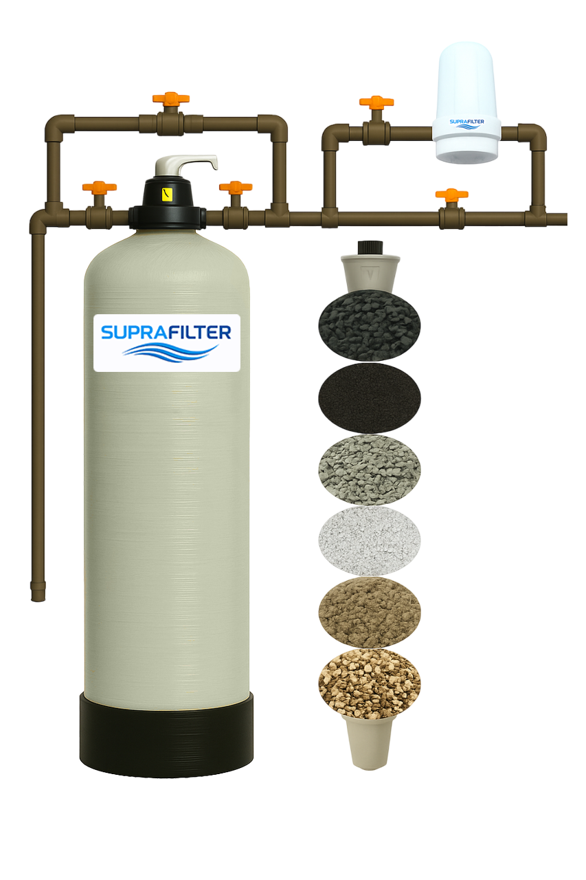 O Filtro Central Removedor Coliformes Odor e Turbidez SPF6m3h da marca SupraFilter é a solucao ideal para garantir água potável de alta qualidade para o consumo humano. Com uma capacidade de filtracao de 6000 litros por hora, este sistema é projetado para atender as necessidades de residencias e pequenos comércios, proporcionando água limpa e segura.