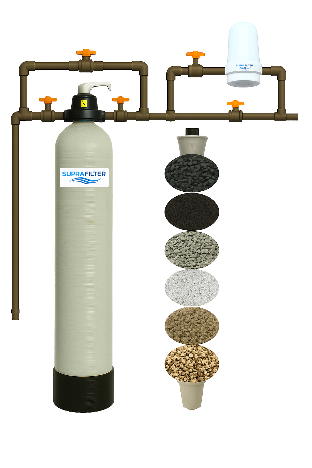 O Filtro Central Removedor Ferro Manganês Coliformes SPF1M3H da marca SupraFilter é a solução ideal para garantir água potável de qualidade em sua residência. Com um design robusto e eficiente, este filtro possui um tanque de fibra de vidro reforçado e um sistema de filtração que remove impurezas como ferro, manganês, bactérias e coliformes, proporcionando água limpa e saudável para o consumo humano.