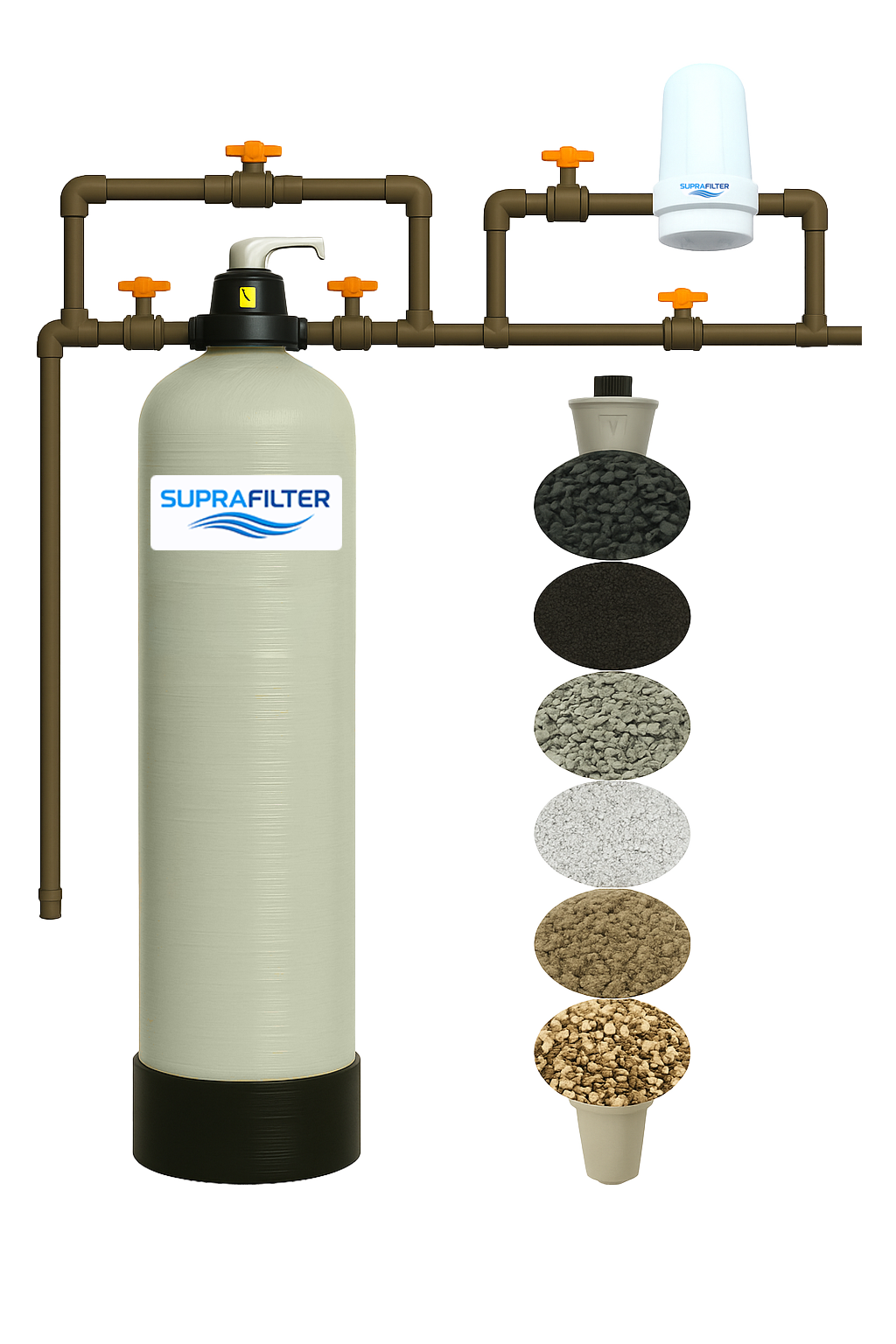 O Filtro Central Tratamento Ferro Manganês SupraFilter SPF4m3h é a solução ideal para quem busca água potável de qualidade superior. Com um sistema de filtração eficiente, ele remove bactérias, coliformes, ferro, ferrugem, partículas suspensas, sabor e odor, além de agrotóxicos e toxinas, garantindo água limpa e saudável para o consumo humano.